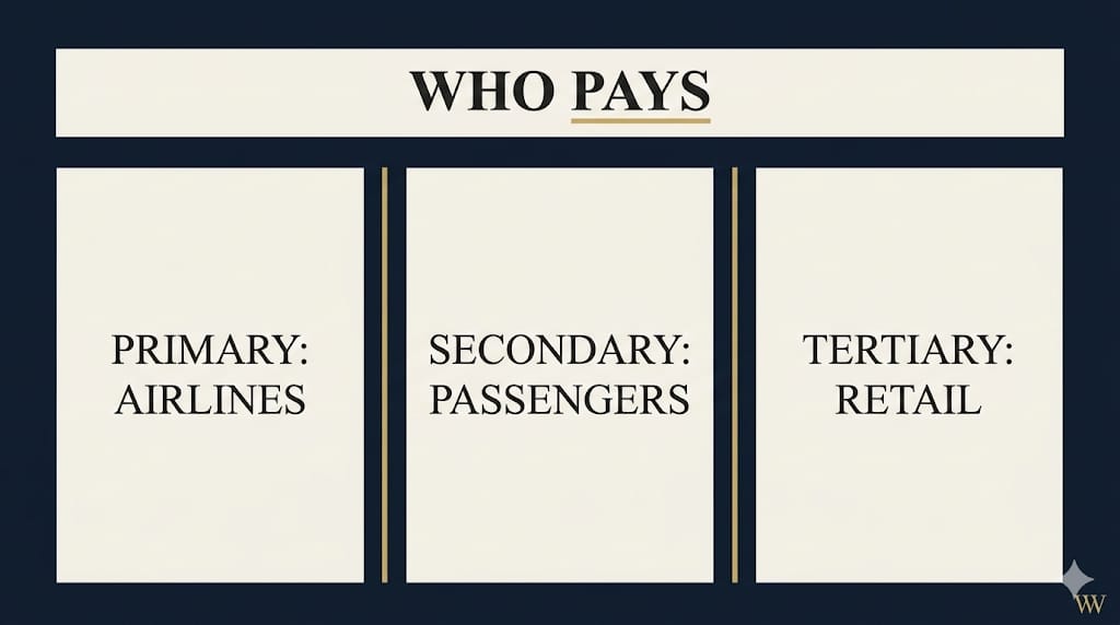 Tertiary: Global retail operators (duty-free, food & beverage) paying rent and revenue-share agreements