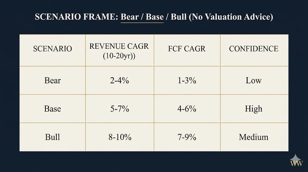 Confidence in Base Case: HIGH. The business has demonstrated resilience through multiple cycles. Historical traffic growth and margin trends support the 5–7% revenue CAGR assumption. Regulatory risk is real but is already priced into expectations. The U.S. retail diversification is a de-risking move, not a growth bet.